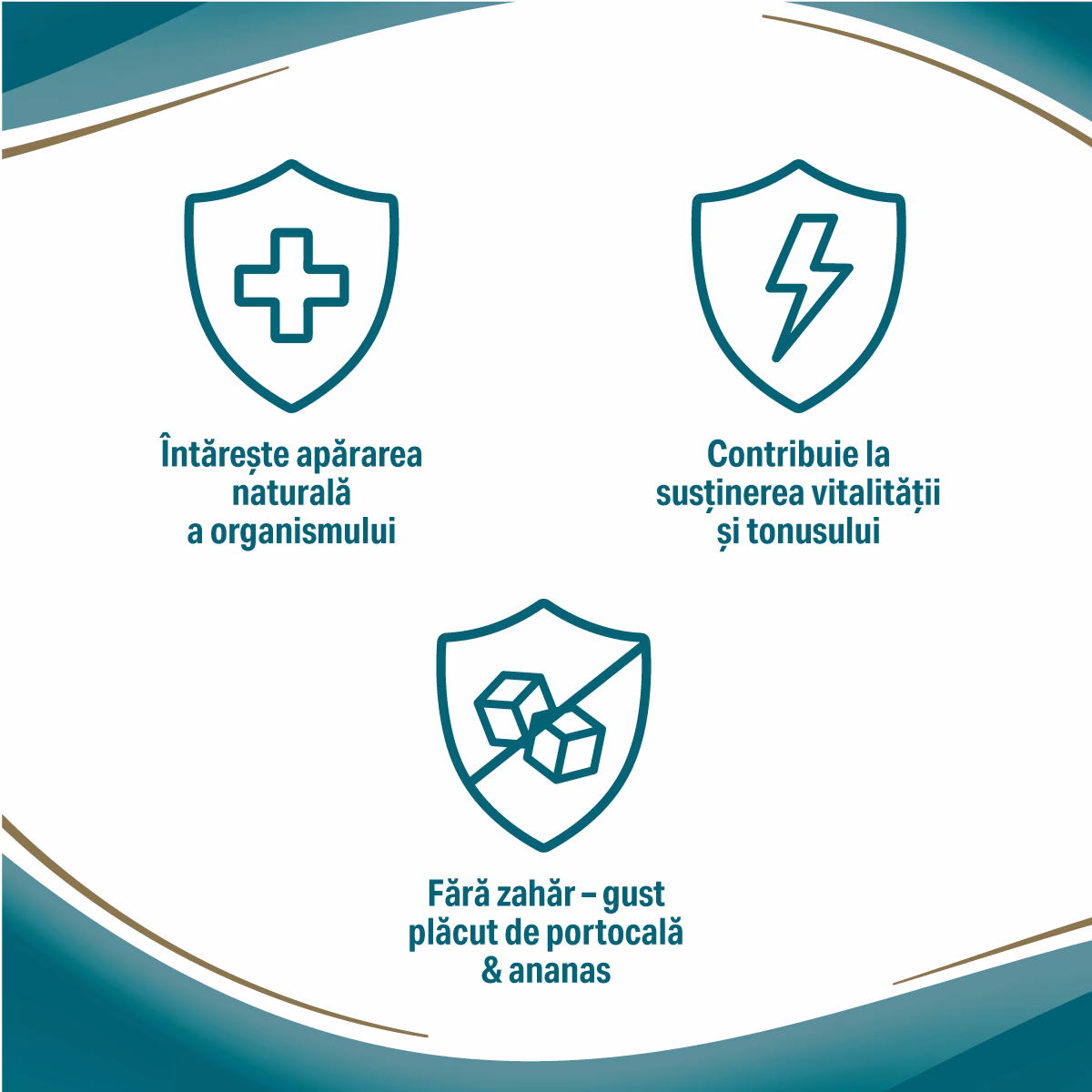 Combinație de 3 ingrediente naturale, studiate clinic, care sprijină mecanismul natural de apărare al organismului.
