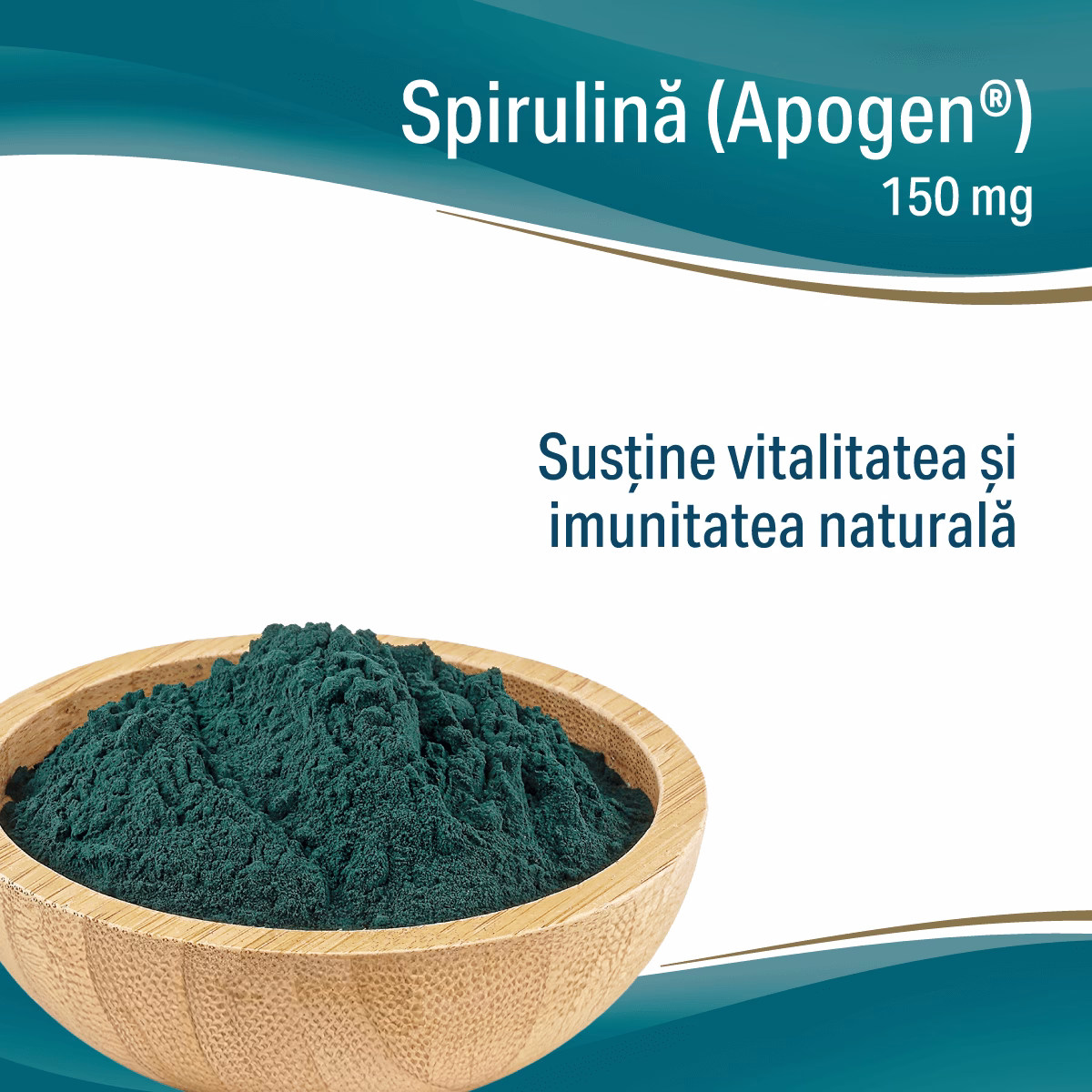 Extractul de Spirulină/Spirulina platensis (Apogen®) ajută la îmbunătățirea tonusului și vitalității. In caz de oboseală te ajută să te simți mai energic. Spirulina este recunoscută pentru acțiunea ei imunostimulatoare.