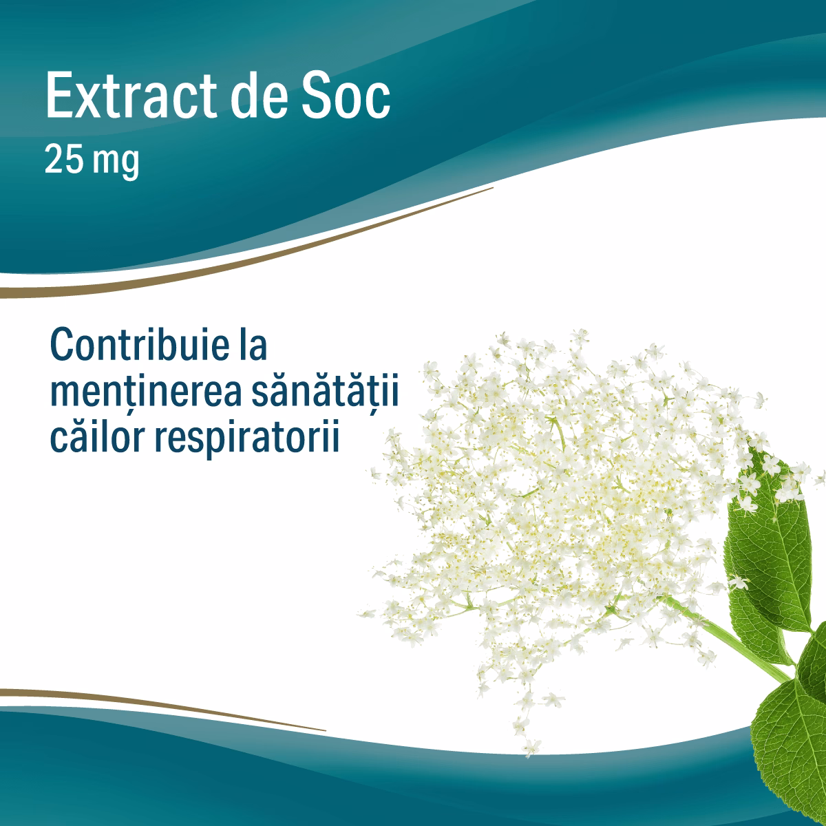 Extractul de Soc/Sambucus nigra este cunoscut pentru proprietățile sale antioxidante și poate susține răspunsul imun al organismului în perioadele solicitante.