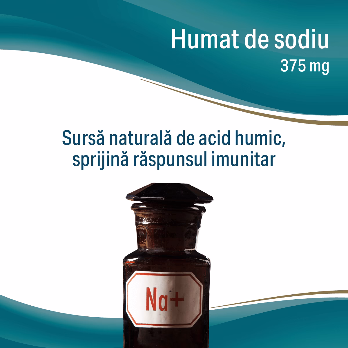 Humatul de sodiu este extras din leonardit natural și este o sursă de acid humic. În prezent, acest ingredient este intens studiat pentru rolul lui în creșterea imunității.