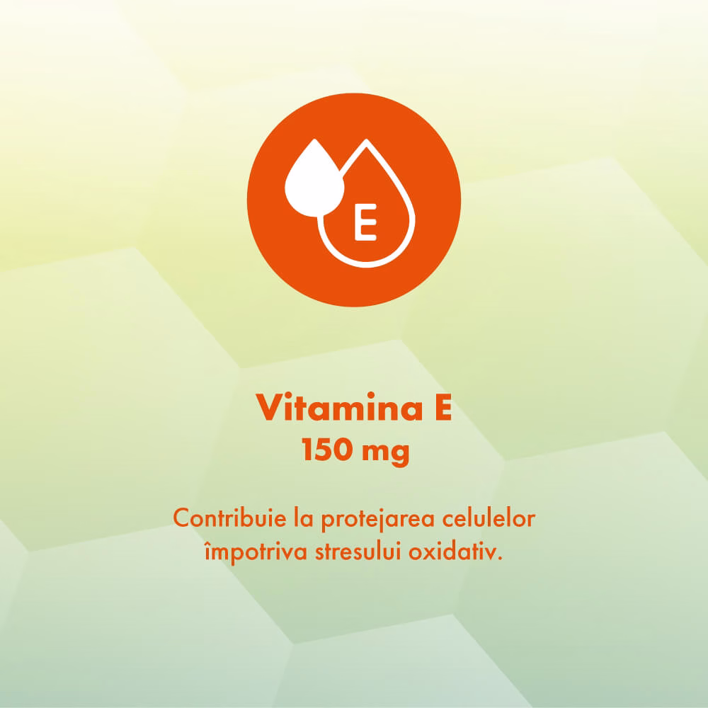 Vitamina E contribuie la protejarea celulelor împotriva stresului oxidativ. Vitamina E este un nutrient esențial prezent în numeroase alimente și suplimente, ea este cunoscută și utilizată în mod tradițional în alimentație de peste 100 de ani.