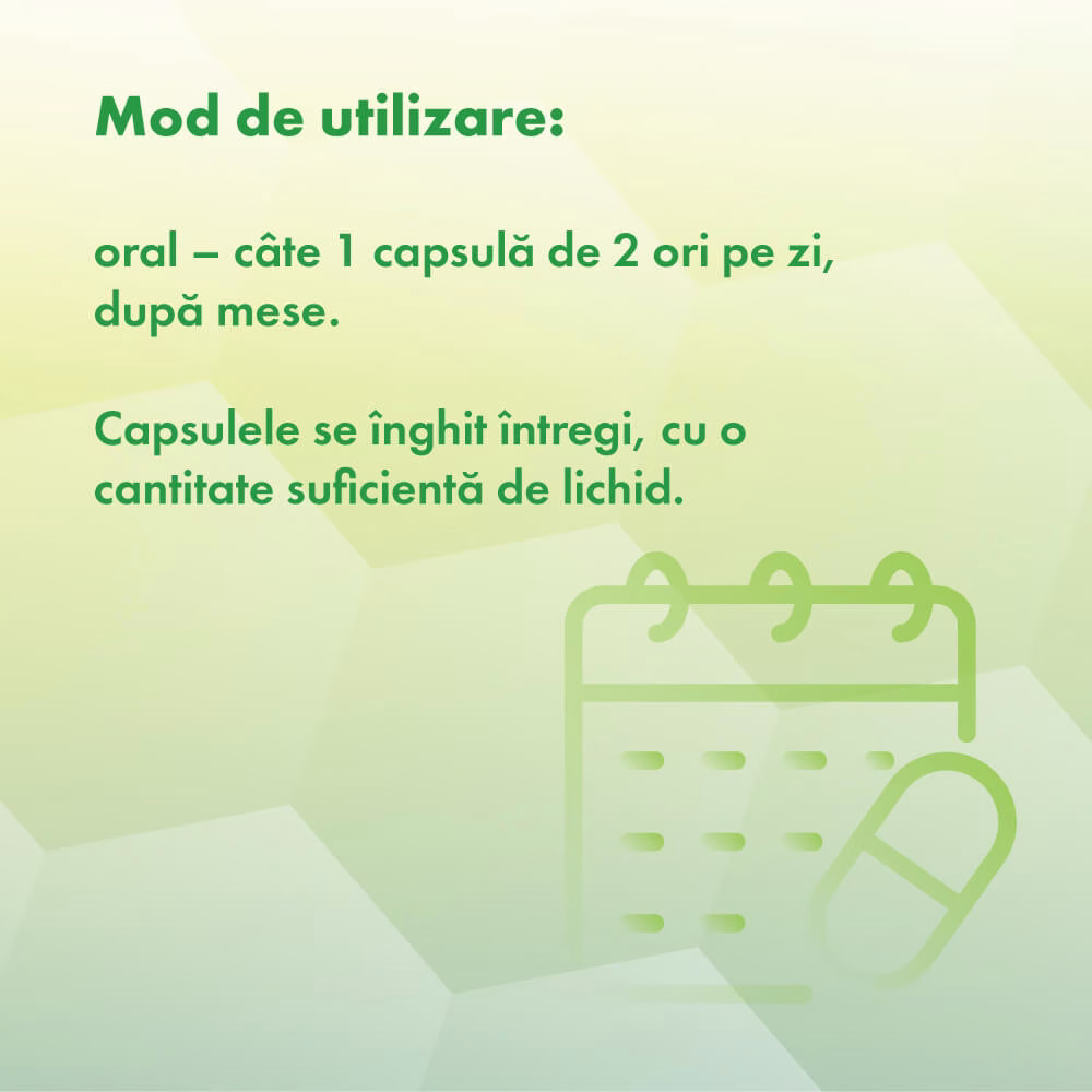Oral – câte 1 capsulă de 2 ori pe zi, după mese.