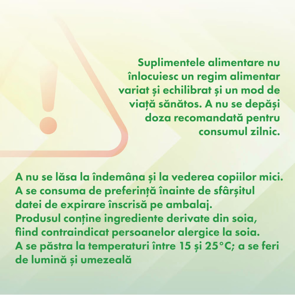 - Produsul conține ingrediente derivate din soia, fiind contraindicat persoanelor alergice la soia