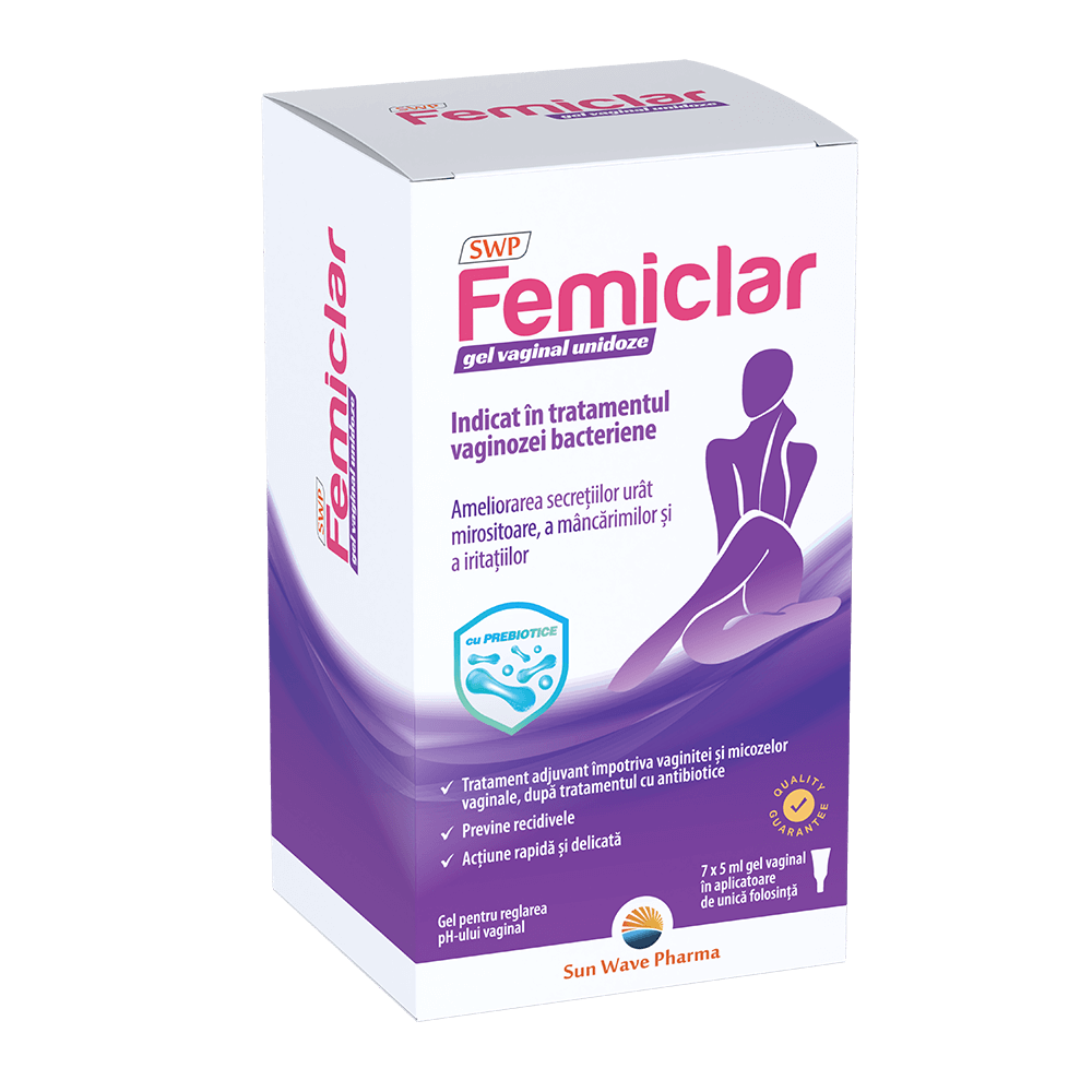 SWP Femicar HPV este un gel-cremă eutrofic, produs inovator, pe bază de argint coloidal și acid citric, cu acțiune antimicrobiană, dezinfectantă și calmantă pentru tratarea condilomului cauzat de HPV.