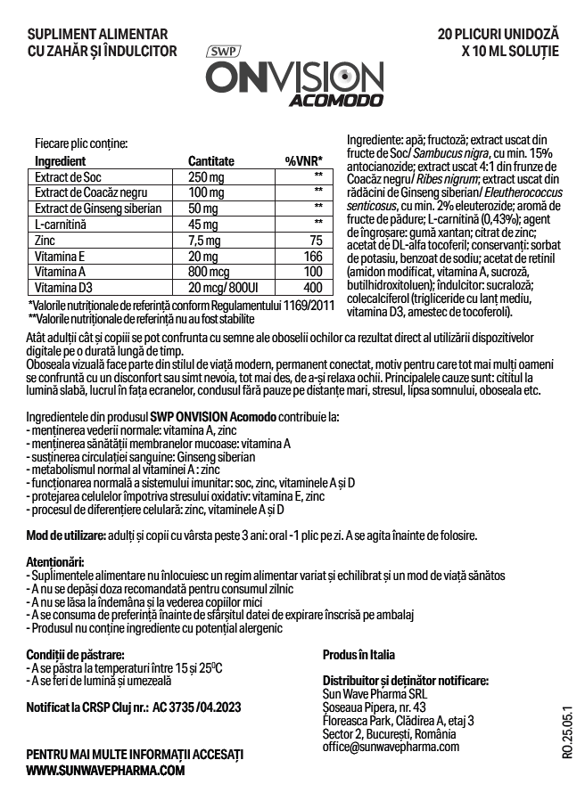 Ingredientele din produsul SWP Onvision Acomodo contribuie la: