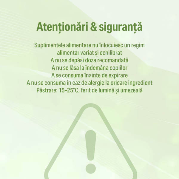 - Suplimentele alimentare nu înlocuiesc un regim alimentar variat și echilibrat și un mod de viață sănătos