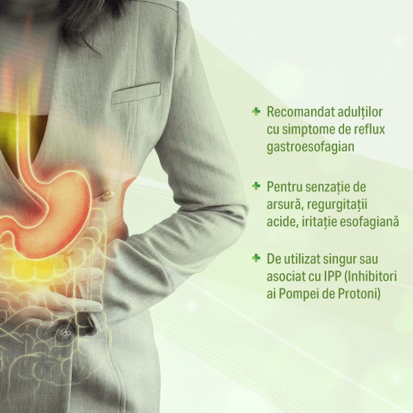 Susține integritatea mucoasei gastro-esofagiene
